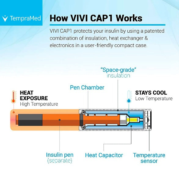 "I was so excited to find the vivi Cap products. Temperature extremes affect Insulin and once that happens, the blood sugar controls get out of hand. I really think it's a life-saving product. Plus, it's all FDA registered and very easy to use"